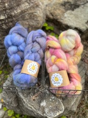 ※ 染色時に繊維同士がくっつき固まってしまった部分があります。乾燥時にある程度は解しましたが、繊維を解しローラグや篠などにしてから紡ぐとスムーズに紡げると思います。