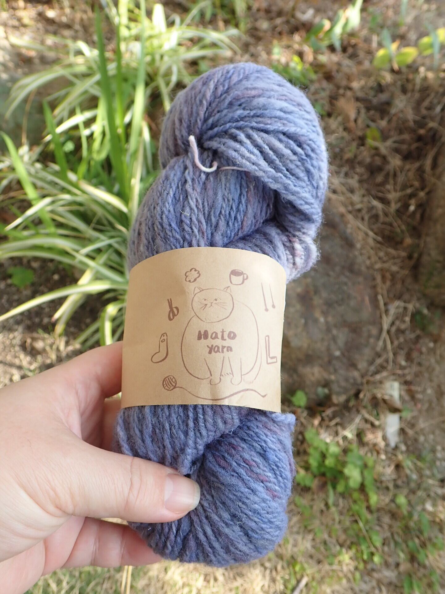 メリノウールを好きな色に染色して、丁寧に時間をかけて手紡ぎしました。