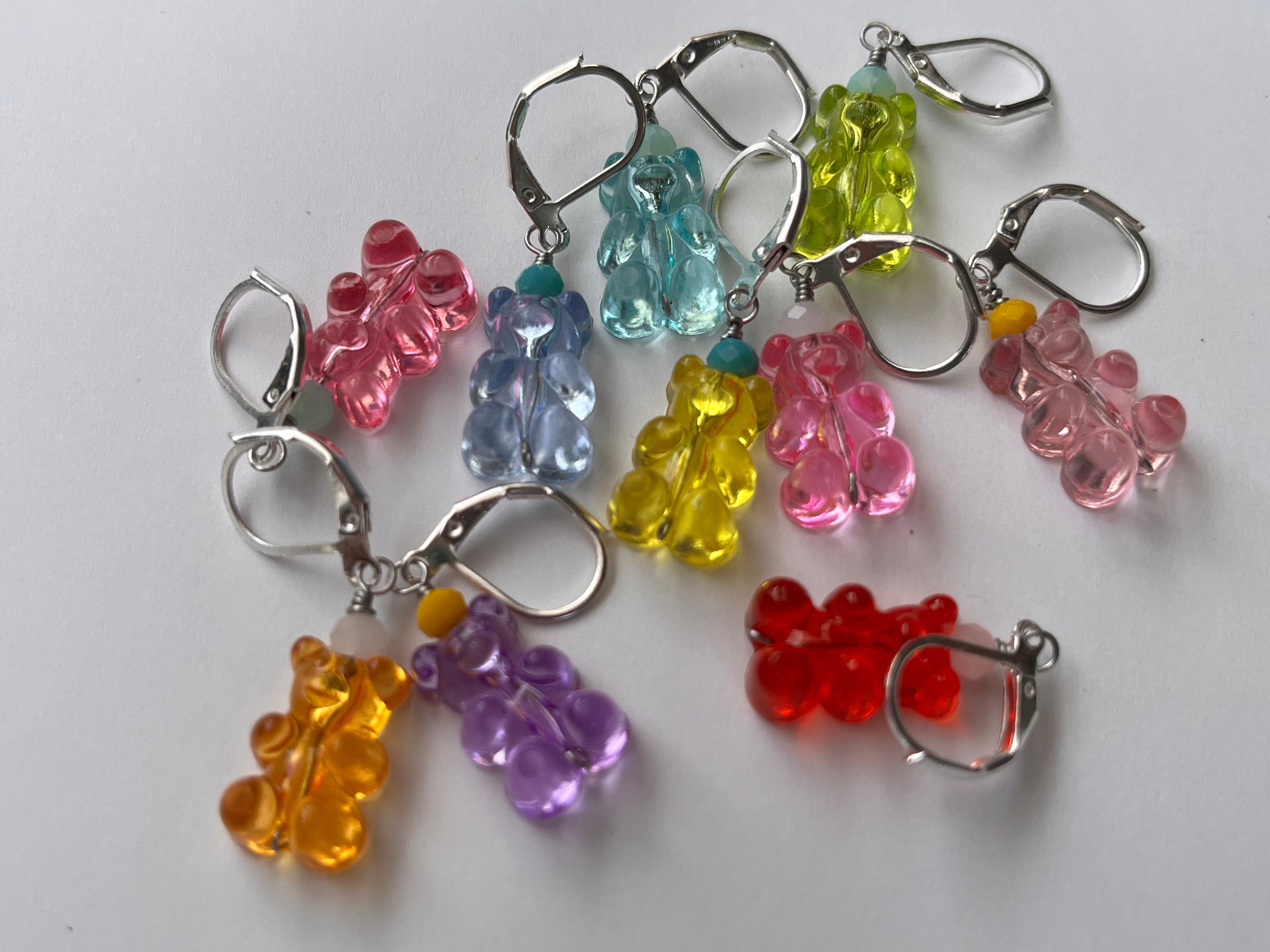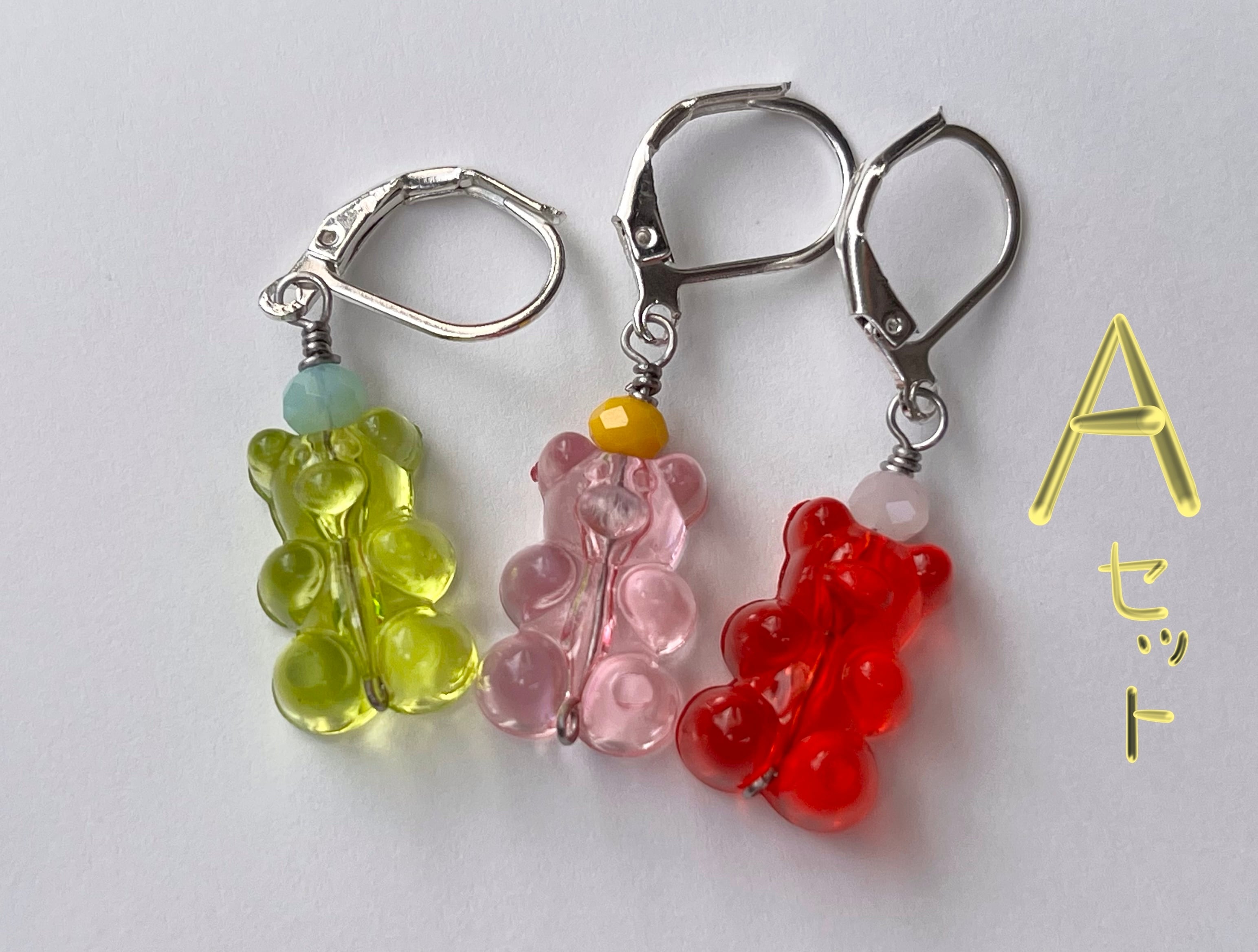 まるで本物のグミのような、つやつや・ぷっくりとしたクマのアクリルビーズでステッチマーカーを仕立てました。