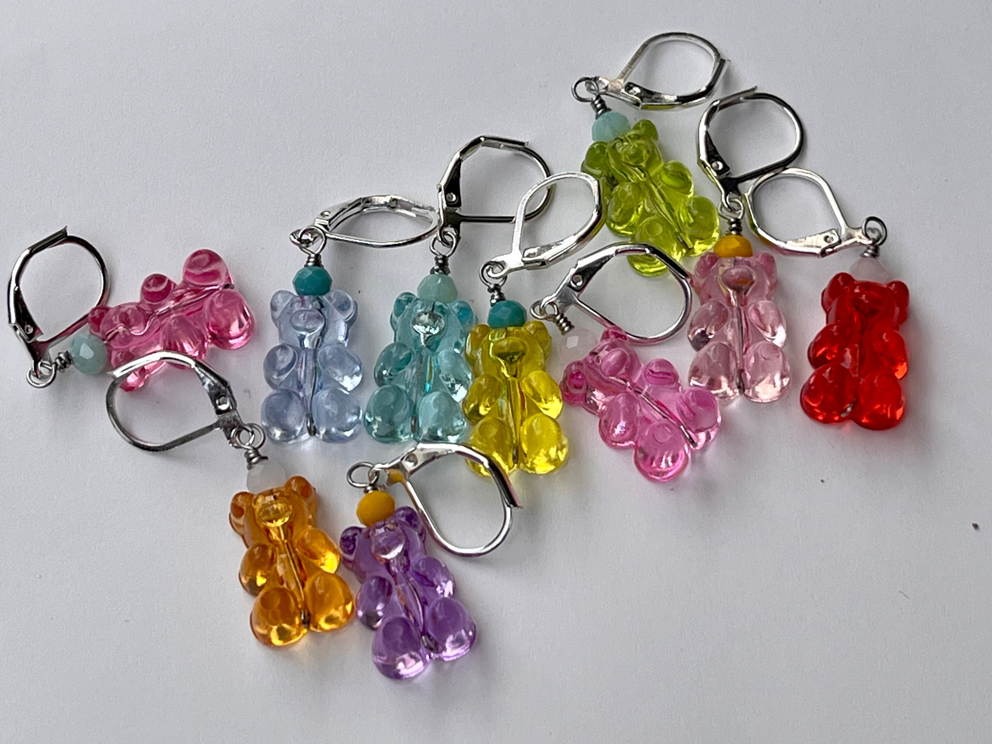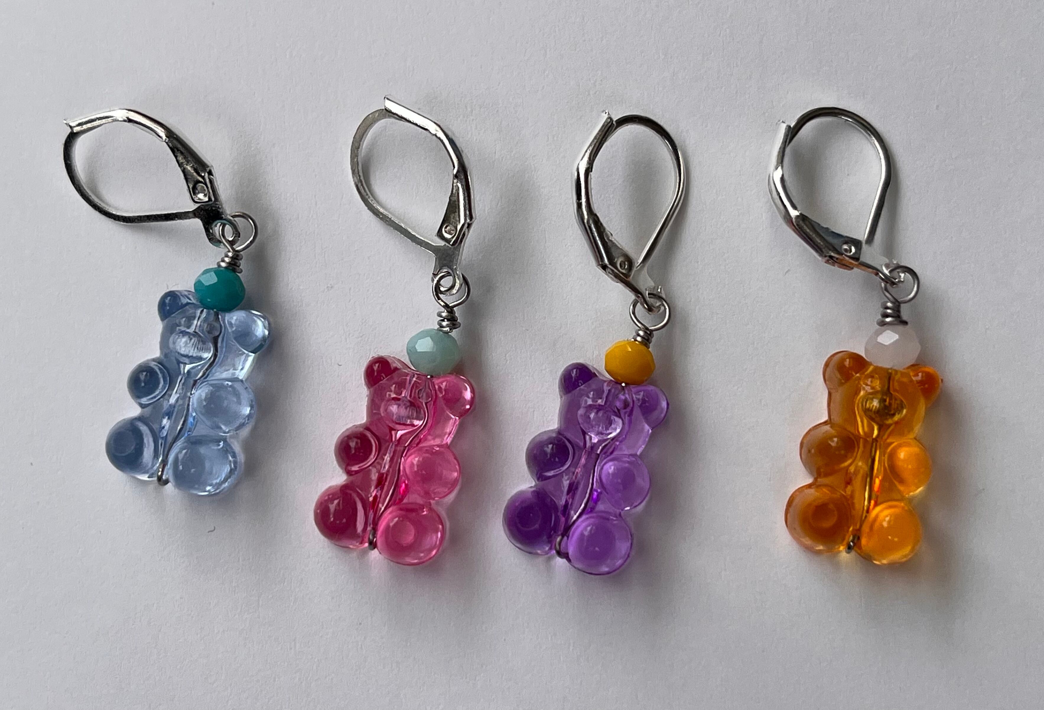 まるで本物のグミのような、つやつや・ぷっくりとしたクマのアクリルビーズでステッチマーカーを仕立てました。